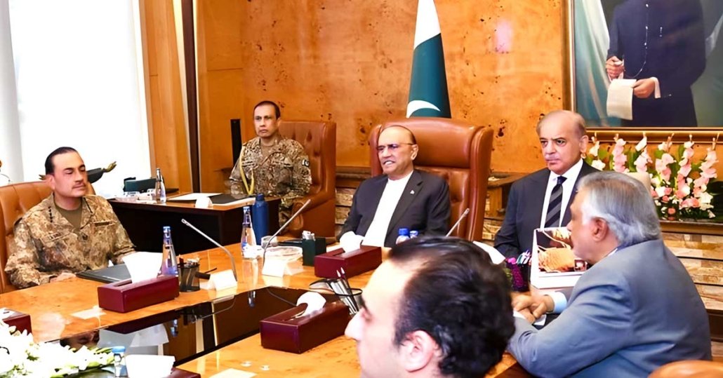 صدر مملکت آصف علی زرداری کی زیر صدارت اہم اجلاس منعقد ہوا جس میں سول و عسکری قیادت نے معاشی نظم و نسق، توانائی منصوبہ بندی، فوڈ سکیورٹی اور سکیورٹی پالیسیز کو ہم آہنگ رکھنے پر اتفاق کیا، حکومتی فیصلوں میں عوامی مفاد کو مقدم رکھنے اور معاشی و توانائی چیلنجز سے نمٹنے کے لیے جامع حکمت عملی اپنانے کا فیصلہ کیا گیا۔ صدر مملکت آصف علی زرداری کی زیر صدارت ایوانِ صدر میں اعلیٰ سطح کا اہم مشاورتی اجلاس ہوا جس میں وزیراعظم شہباز شریف، فیلڈ مارشل سید عاصم منیر، نائب وزیر اعظم اسحاق ڈار، چیئرمین پیپلز پارٹی بلاول بھٹو زرداری، وزیر داخلہ محسن رضا نقوی، وزیر خزانہ محمد اورنگزیب، وزیر توانائی علی پرویز ملک اور وزیر اقتصادی امور احد خان چیمہ بھی شریک ہوئے۔