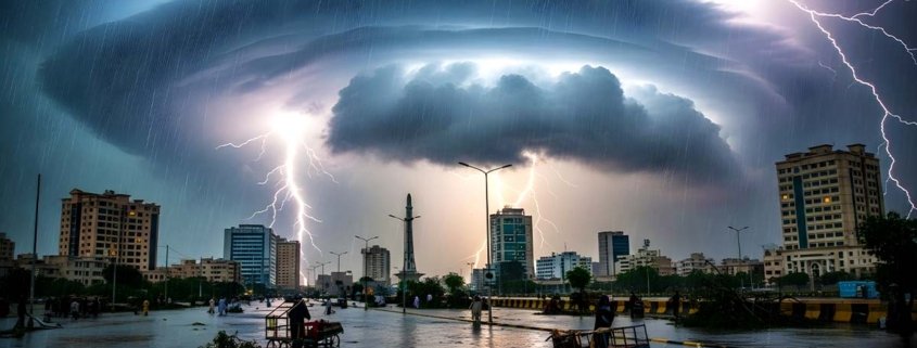 کراچی میں طوفانی ہواؤں کےساتھ موسلادھاربارش سے جل تھل ایک ہوگیا،بلدیہ مواچھ گوٹھ کےقریب دیوار گرنے سے 13 افراد جاں بحق ہوئے،جبکہ متعدد افراد زخمی ہوگئے ہیں 1شہر کے مختلف مقامات پر بارش کا پانی تاحال جمع ہے،شہر میں ہوائیں 5 کلو میٹر فی گھنٹے کی رفتار سے چل رہی ہے،محکمہ موسمیات کا کہنا ہے کہ مختلف علاقوں میں کہی تیز اور ہلکی بارش ہوسکتی ہے۔