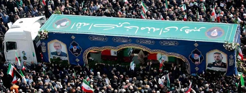 سرکاری میڈیا کے مطابق سابق سیکیورٹی سربراہ علی لاریجانی، بسیج فورس کے کمانڈر غلام رضا سلیمانی سمیت دیگر افراد کی نمازِ جنازہ انقلاب اسکوائر پر ادا کی گئی، جہاں عوام کی بڑی تعداد نے شرکت کر کے اپنے غم و غصے کا اظہار کیا۔