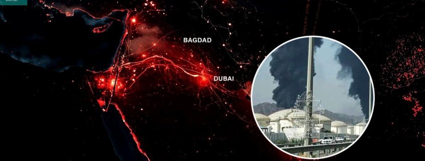دوسری جانب متحدہ عرب امارات بھی مسلسل حملوں کی زد میں ہے، جہاں ایرانی کارروائیوں میں بغیر پائلٹ طیارے اور میزائل استعمال کیے جا رہے ہیں۔ دبئی انٹرنیشنل ایرپورٹ کے قریب واقعے کے بعد آگ بھڑک اٹھی اور پروازیں عارضی طور پر روک دی گئیں، جبکہ فجیرہ بندرگاہ اور ابو دبئی کے مضافات میں بھی حملوں کی اطلاعات ہیں۔