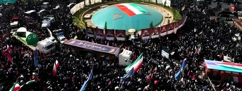 ایرانی پرچم تھامے ہزاروں افراد نے نماز جنازہ میں شرکت کی گئ
